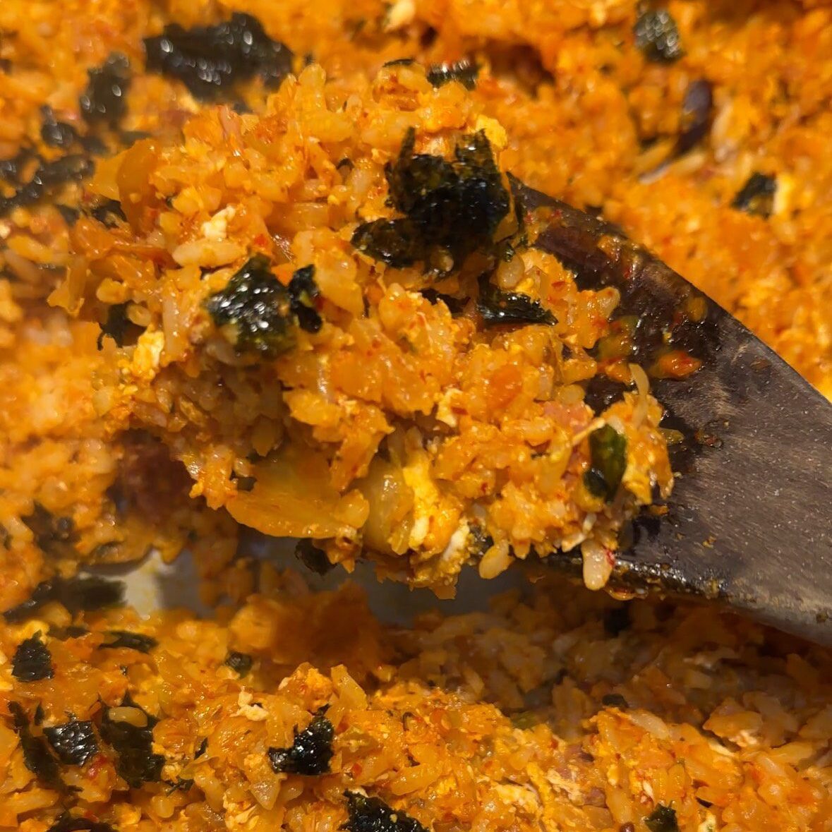 5. Serve the kimchi fried rice with roasted & seasoned seaweed on the side to enjoy together!